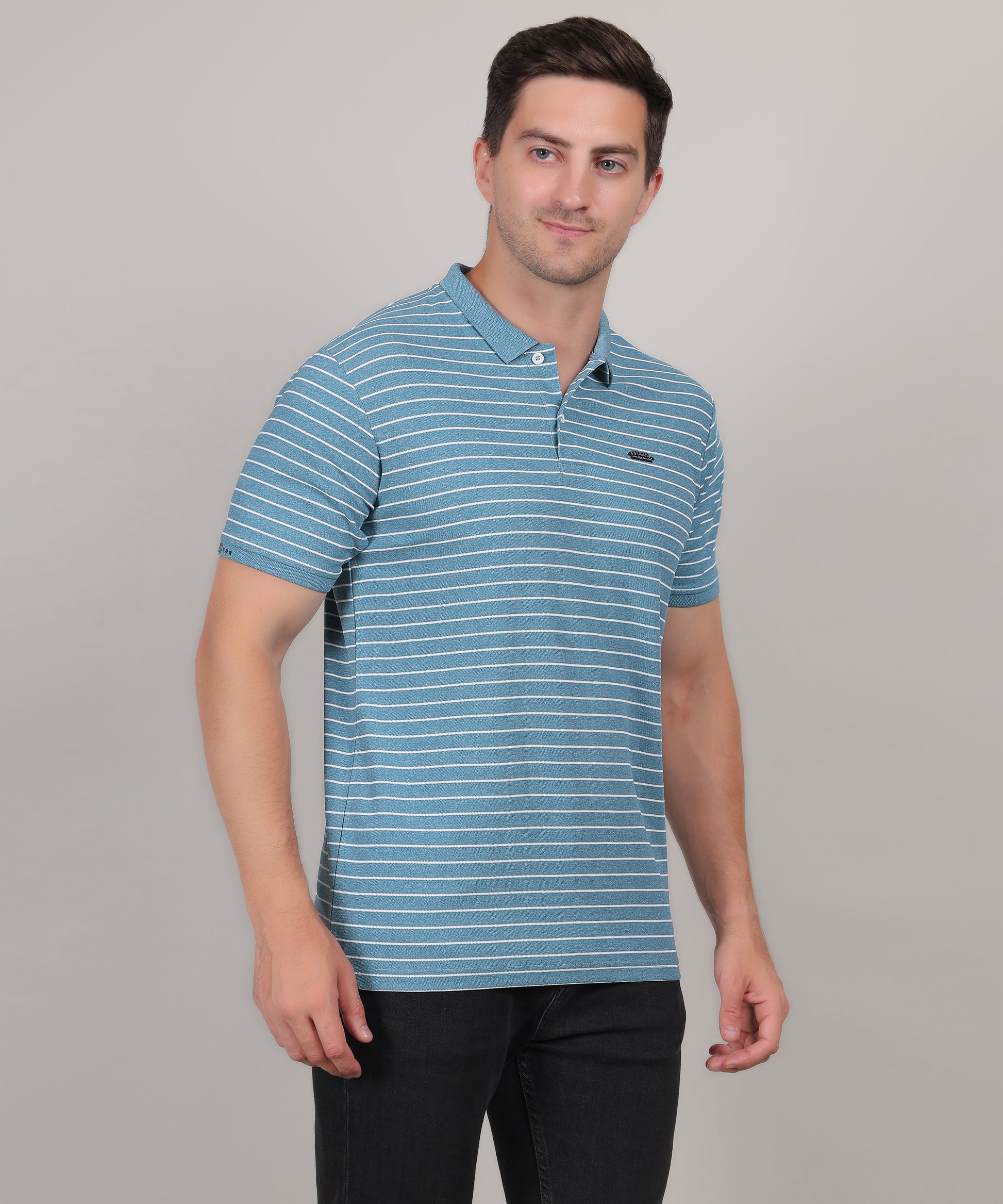SELECT SP121 COTTON POLO SKY BLUE T-SHIRT