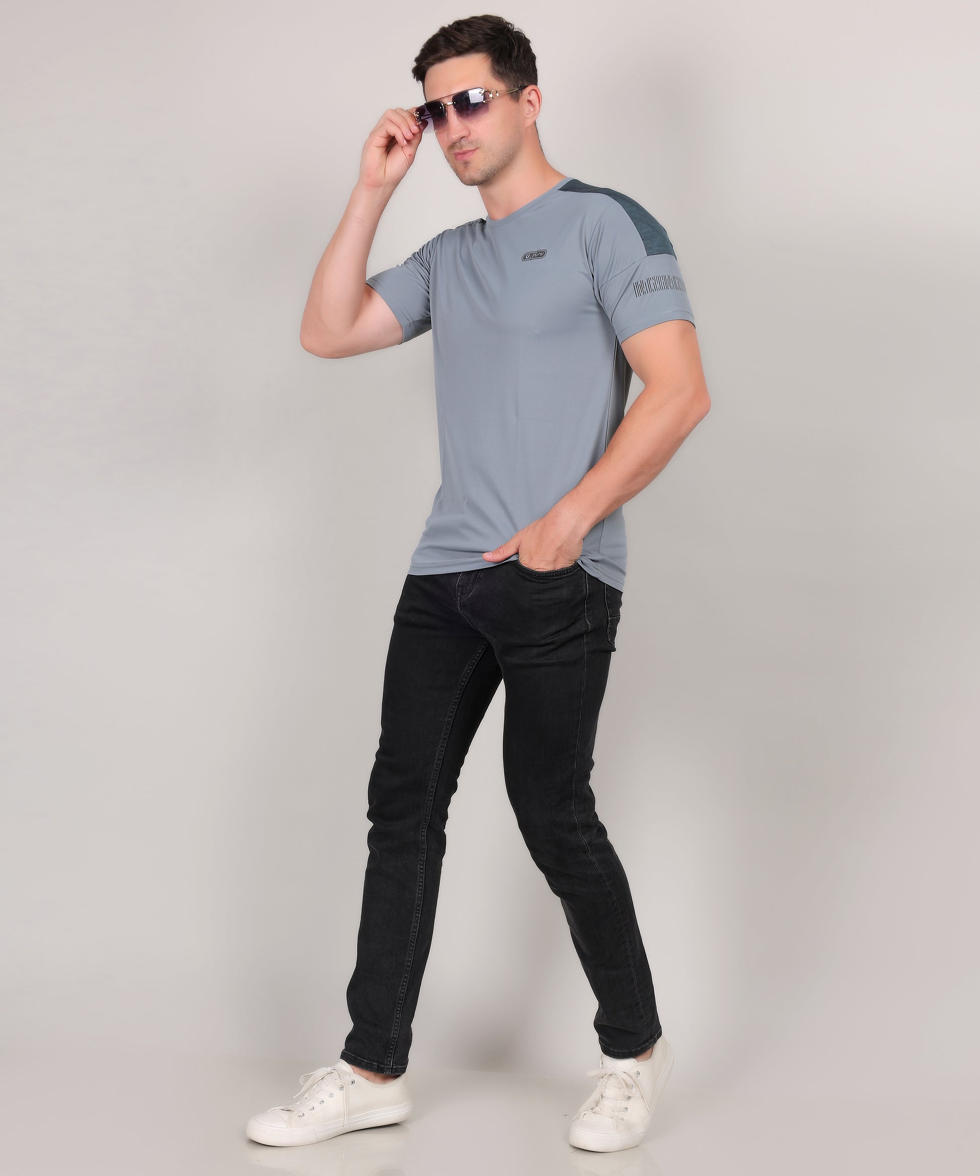 SELECT 1115 ROUND NECK PRINT GREY T-SHIRT