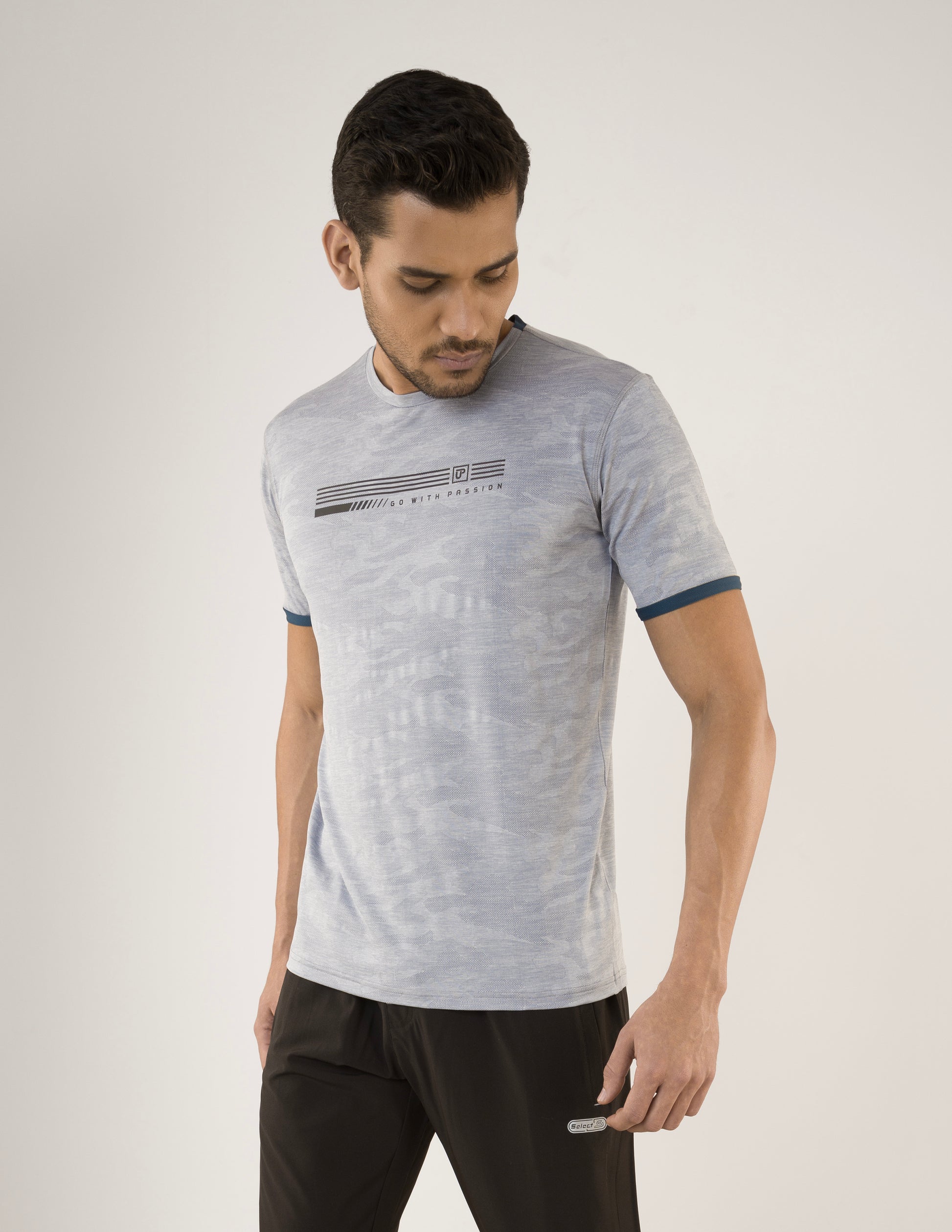 SELECT 4147 ULTRA-DRY JACQUARD KNIT ROUND NECK LIGHT BLUE GREY T-SHIRT